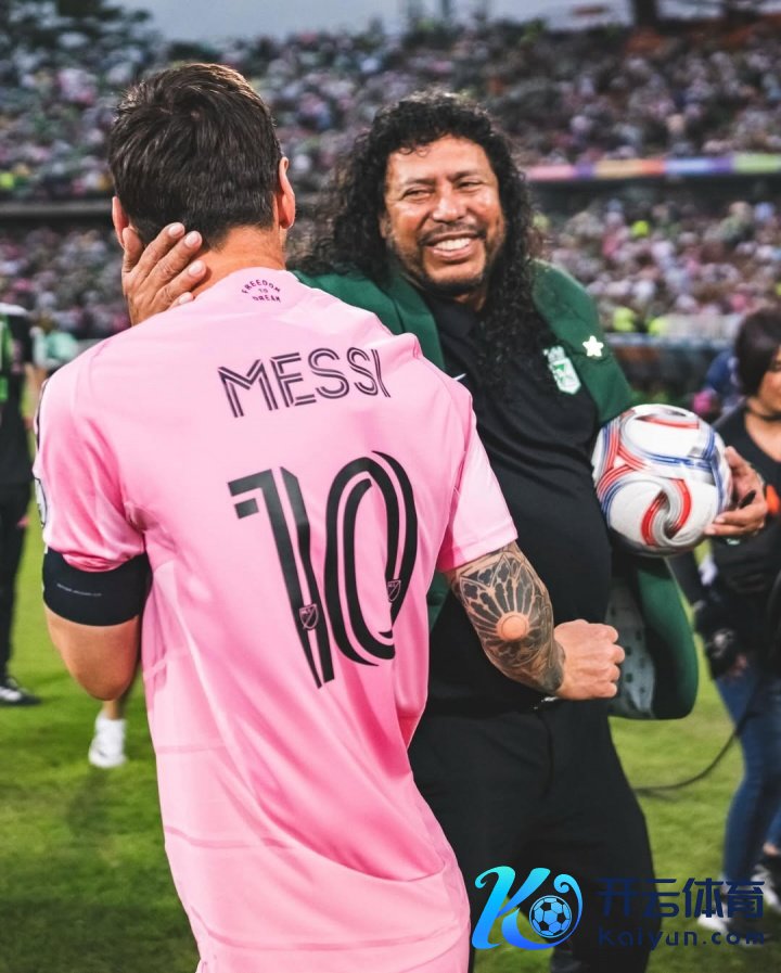 梅西赛前与哥伦比亚据说门将伊基塔进行开球庆典,随后两东说念主拥抱请安。