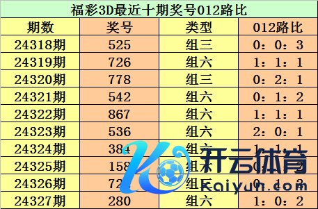 开奖纪念:第2024327期3D奖号为280。现象:组六,奇偶比0:3,大小比1:2,012路比为1:0:2。