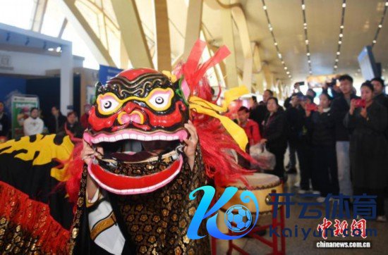 1月29日,石林县的演员在长水机场饰演狮虎舞。 黄兴鸿 摄