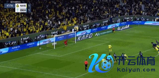 第 39 分钟,马内禁区内策应,被阿科多后卫放倒在地,裁判毅然默示点球。3 分钟之后,C 罗操刀稳稳掷中,利雅得奏效反超比分,2-1!至此,C 罗贯串 24 个当然年获得进球。