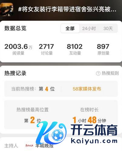 值得一提的是昨天张兴亮须臾上热搜的时分段,该话题主捏东谈主亦然羊城晚报,激发了千万级别的流量体育集锦,如今辟谣亦然该媒体。