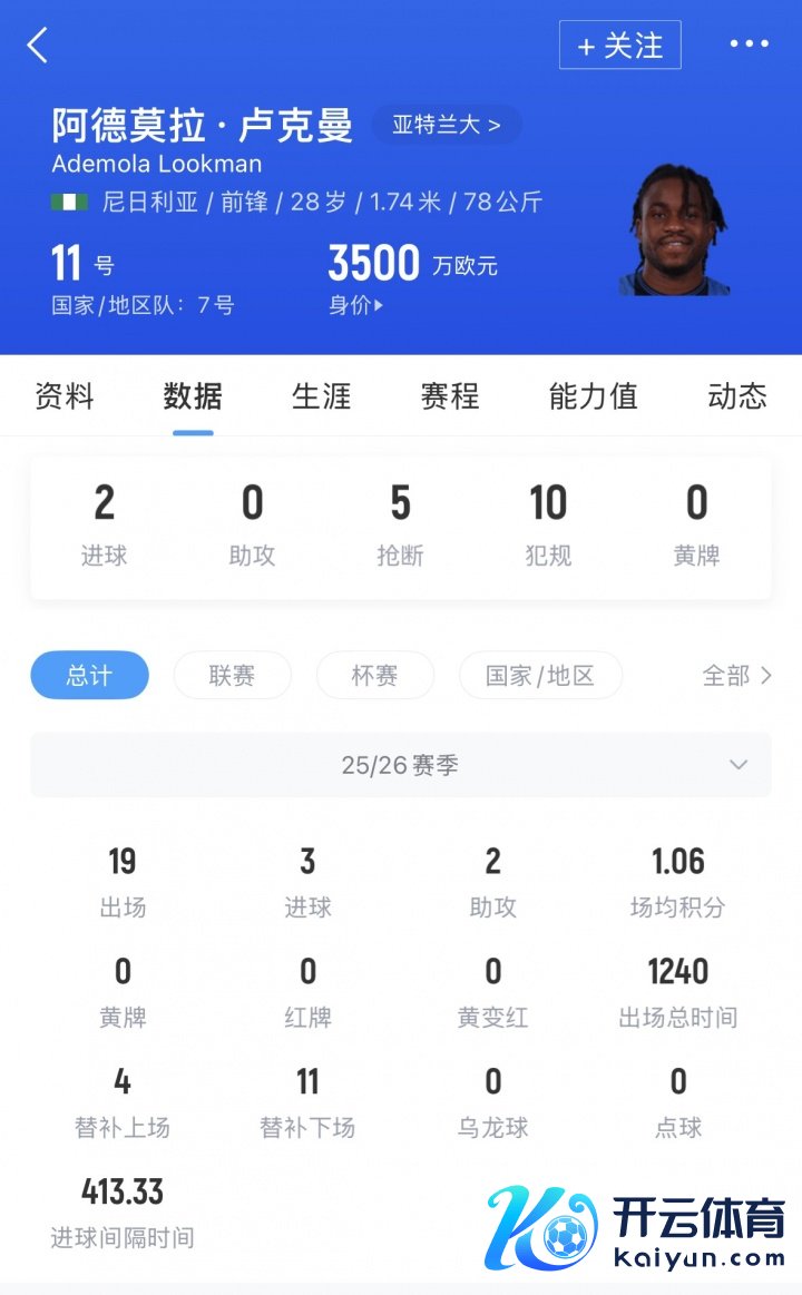 卢克曼现年28岁,本赛季代表亚特兰大出场19次,打进3球送出2次助攻。德回身价为3500万欧。