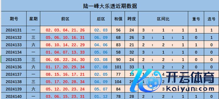 大乐透上期数据分析:前区03体育赛事直播,06,15,23,31,后区01,12。前区和值78,跨度28,区间比2:2:1,开出重号23。莫得开出连号。
